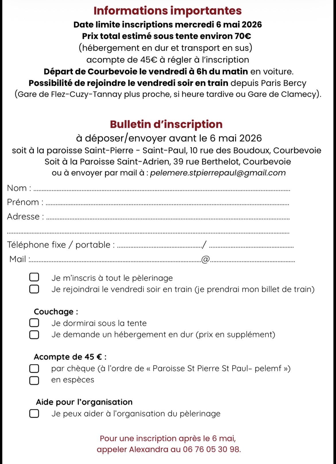 Renseignements et inscriptions (voir aussi le trac plus bas) : pelemere.stpierrepaul@gmail.com
